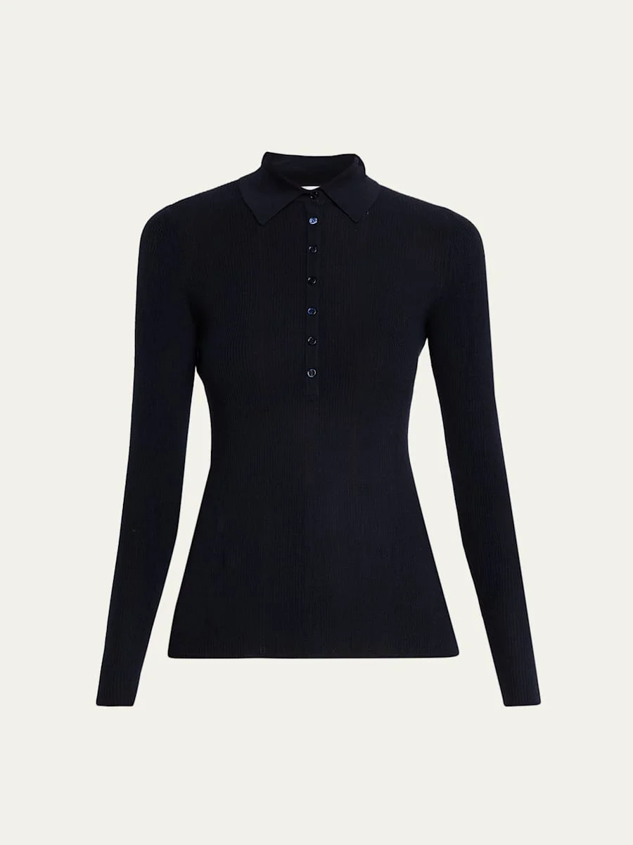 Sophia Rib Knit Long-Sleeve Polo Shirt