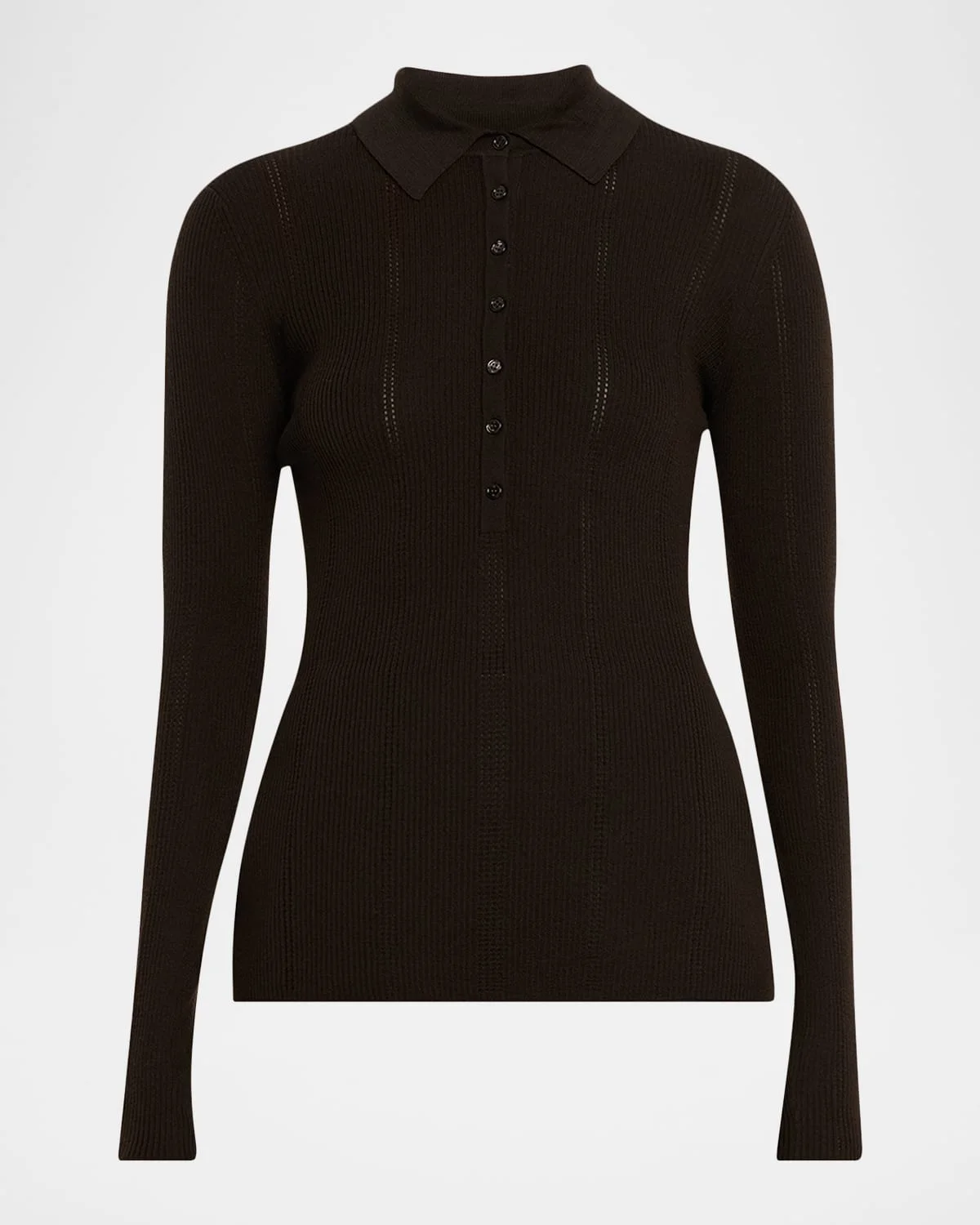 Sophia Rib Knit Long-Sleeve Polo Shirt