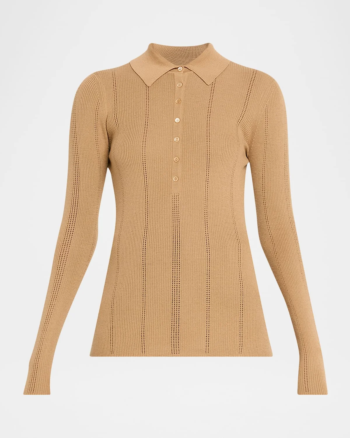 Sophia Rib Knit Long-Sleeve Polo Shirt