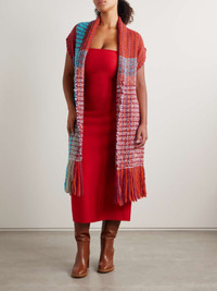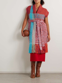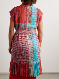 Gabriela Hearst's 'Teagan' vest is woven by skilled Uruguayan artisans from a melange of vibrant and sumptuous cashmere threads that create its bold geometric motif. It's designed in a longline shape with elegant shawl lapels and swishy fringe along the hem. Use the sash belt to cinch the shape. Size & Fit - Fits true to size, take your normal size - Designed for a relaxed fit, use the tie belt to cinch in at the waist - Mid-weight knit with fringed trim - Model is 175cm/ 5'9" and is wearing a size Medium Model measurements: - Bust: 90cm/ 35.25" - Waist: 71cm/ 28" - Hip: 107cm/ 42" Details & Care - Multicolored cashmere - Slips on - 100% cashmere - Dry clean