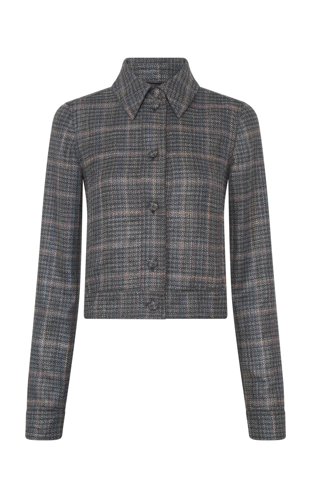 The Thereza jacket redefines classic outerwear in a wool silk blend with a clubcheck plaid finish; creating an enticing form; A shorter length style, with classic collar and front button fastenings. Details: - 88% Wool (Uruguay/Argentina), 12% Silk (China). - Point Collar - Button-up closure - Cropped silhouette - Made in Italy
