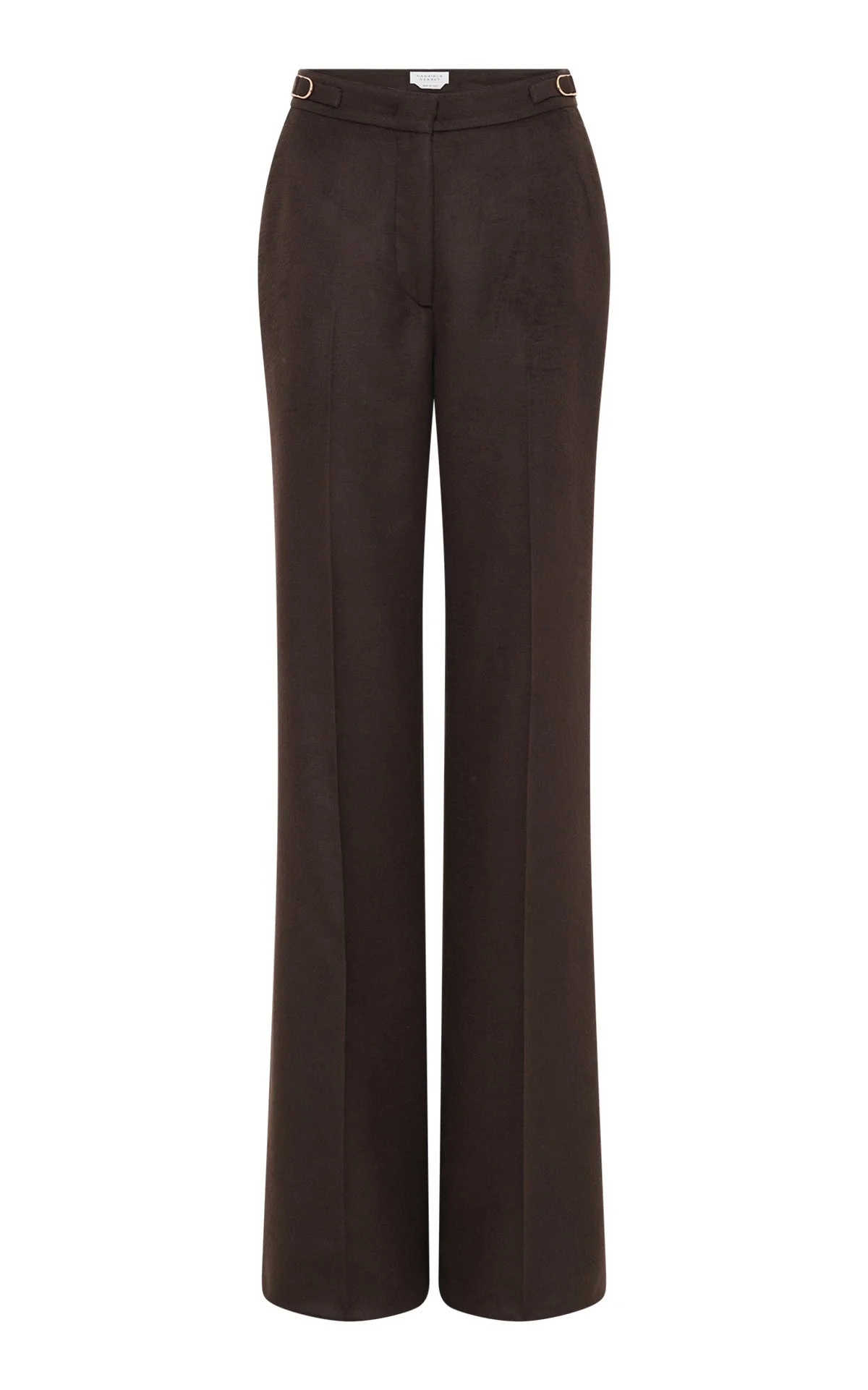 The Vesta pant is a true GH classic style, complete with signature hardware detail at either side of the fitted waistband and gently flared legand is made-and complete our signature suit when worn with the Stephanie Blazer. Details: - 100% Silk - High-waisted - Zipper closure - Two front pockets - Two back welt pocket - Full length - Italian sizing - Made in Italy