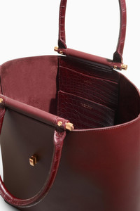 Vevers Tote Bag in Bordeaux Leather with Crocodile Leather Handle