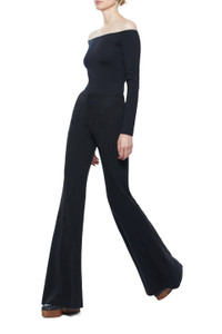 The high-waisted, flare leg design of the Vita Pant nods toward the bohemian spirit of the collection, inspired by the 'La Onda' (The Wave); a multidisciplinary artistic movement created in Mexico by artists and intellectuals as part of the worldwide waves of the counterculture of the 1960's and the avant-garde. This free spirit creates a cornerstone of the collection. The linear pattern of the hessian stripe grounds the overall look. Details: - Flat hook and bar, zipper fly closure - 100% Wool - Made in Italy - Product Details Size and Fit: Fits true to size. Model is 5'11"" and wearing a size IT38.