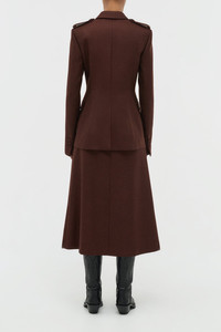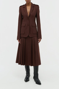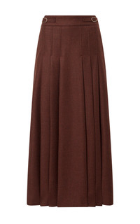 Wesley Pleated Midi Skirt in Burnt Sienna Wool Cashmere Flannel