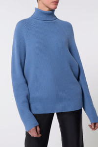 Wigman Knit Turtleneck Sweater in Light Blue Cashmere