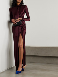 Galvan's 'Emilie' gown will have you feeling so special at your next event. Cut from fluid, shiny satin, it has ties at the front that enhance the fitted shape and will sway as you move. The high side slit means your shoes will be on display, so choose a pair that's equally eye-catching.
