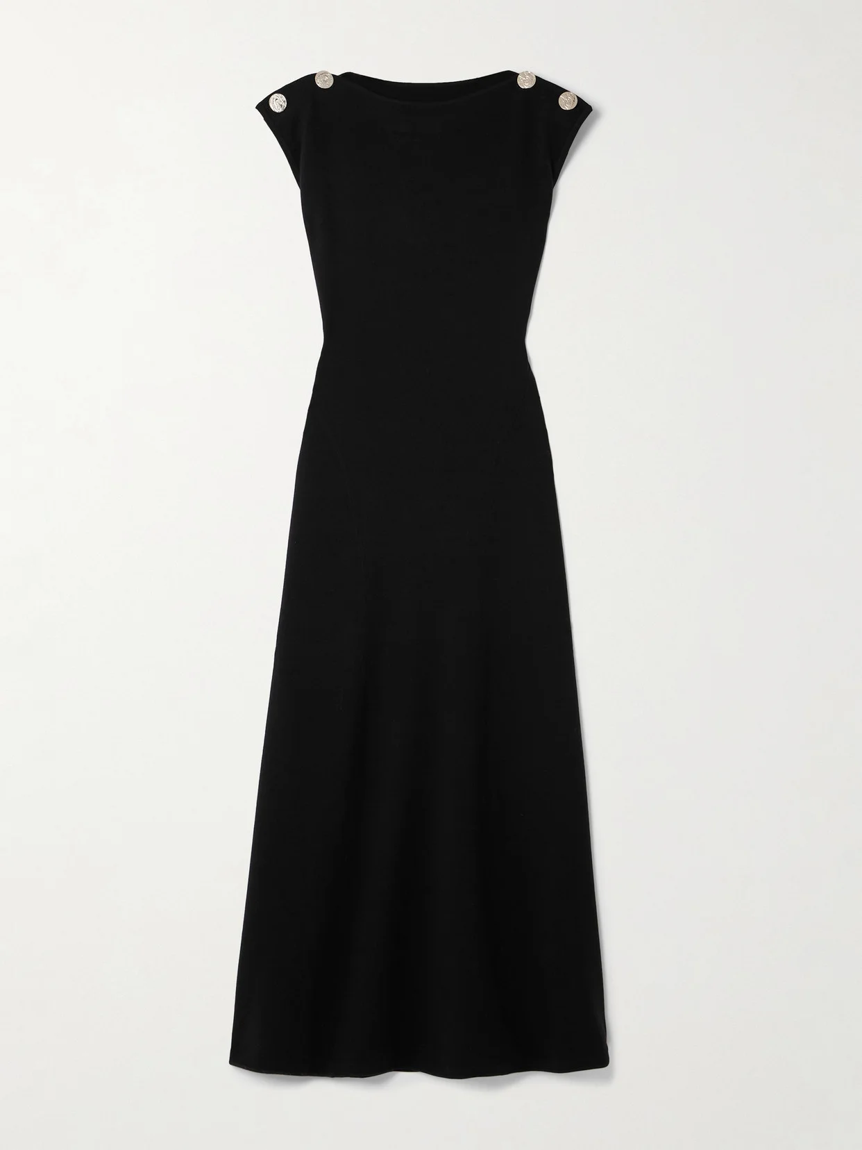 Galvan's 'Fatima' dress is the kind of chic and timeless piece that'll work for countless occasions. It's knitted from a soft wool-blend, embellished with burnished gold-tone buttons at the shoulders and falls to a flowy maxi skirt.