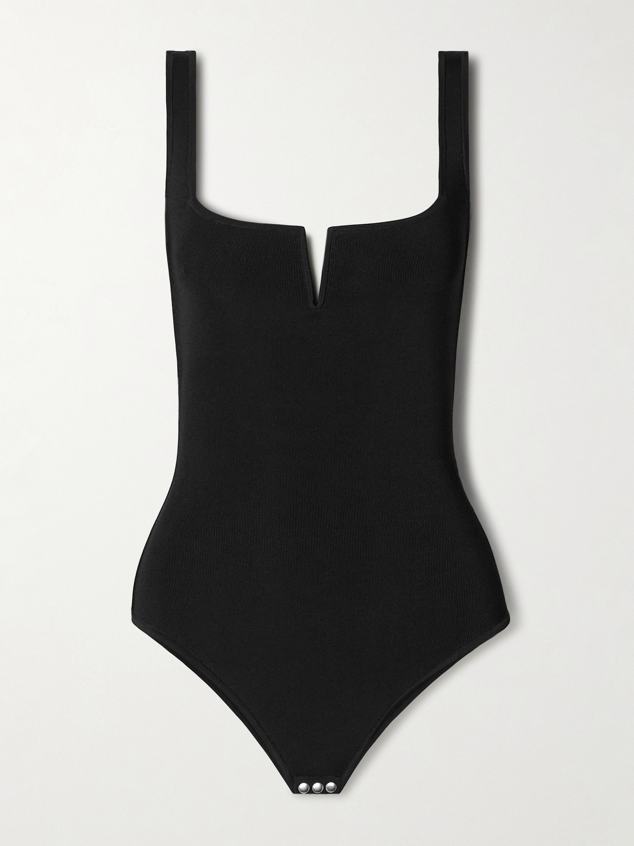 Galvan's 'Freya' bodysuit has the same square neckline and V-shaped boning as the label's coordinating dress (with the same name) in our edit. It's made from smooth stretch-knit for a close fit and has medium brief coverage.