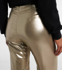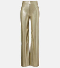 Galvan is a household name for pared-down and ever-elegant designs. These metallic wide-leg pants feature a flattering high-rise waist with an invisible zip closure at the back. Product Details - Material: 100% polyester - Care instructions: dry clean - Made in the UK - Designer color name: Olive Gold - Item color: green - Closure: invisible zipper - Item number: P01069783 Size & Fit - True to size - Sizing adapted to taller women - Non-stretchy fabric - Wide-leg - High-waisted - The model seen in the picture is 178cm-5'10" and wearing a size FR 36