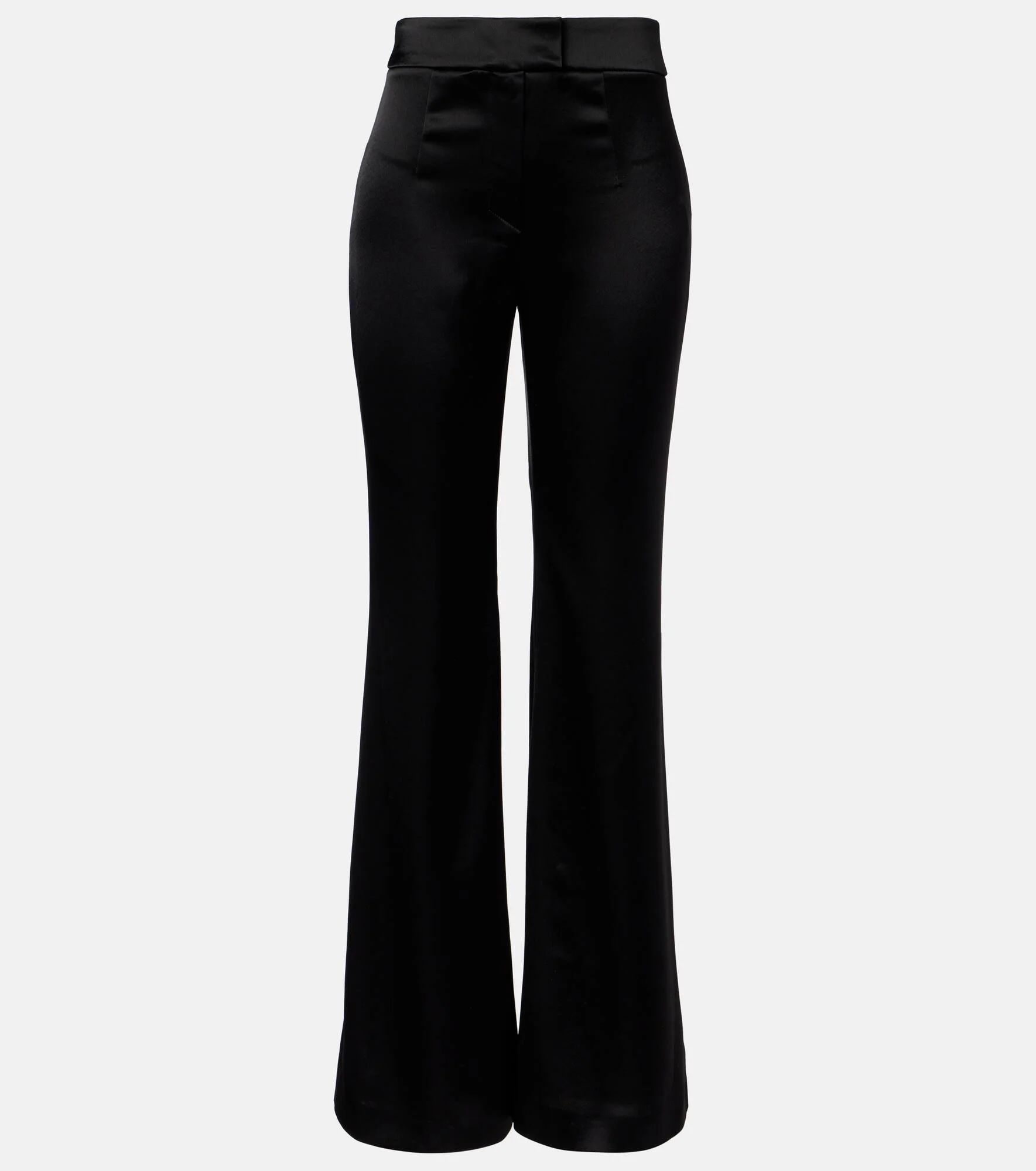 Best-known for its modern take on eveningwear, women-run Galvan covers all the bases for a polished wardrobe. The Julianne satin flared pants are cut to a high-rise silhouette and finished with a concealed fastening. Product Details - Material: 80% triacetate, 20% polyester - Care instructions: dry clean - Made in Portugal - Designer color name: Black - Item color: black - Lining: 94% polyester, 6% elastane - Closure: zipper fly, button fastening - Item number: P01069759 Size & Fit - True to size - Wide-leg - High-waisted - The model seen in the picture is 178cm-5'10" and wearing a size FR 36