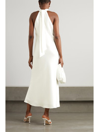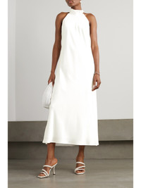 EXCLUSIVE AT NET-A-PORTER. The effortless, body-skimming silhouette of Galvan's signature 'Sienna' dress makes it an elegant choice for your big day or the events surrounding it. Cut from glossy satin, the high neck leads to a sash that drapes down the back.