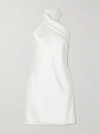 EXCLUSIVE AT NET-A-PORTER. Galvan updates its signature 'Pandora' gown in a lustrous white shade that's perfect a modern bride's engagement party, rehearsal dinner or vows. It's made from fluid satin that drapes effortlessly and has an elegant sash at the back that falls from the high neckline. Wear yours with strappy sandals and a clutch.