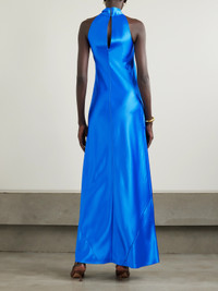 Galvan's 'Portico' gown fits glamorous dress codes perfectly. It's bias-cut from liquid satin and has a thick, twisted collar. The diagonal cut draws attention to your shoulders, so dust them with a little highlighter.