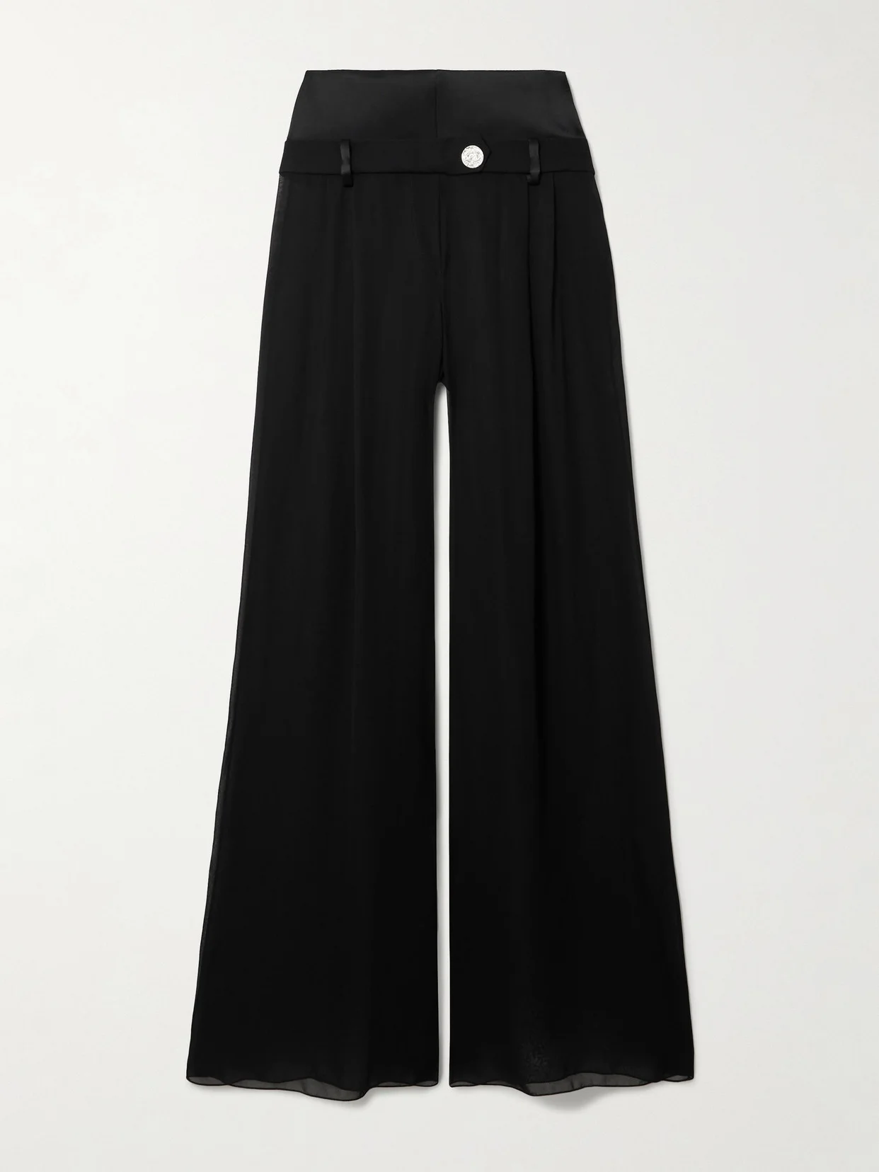 Strata Embellished Satin-trimmed Georgette Wide-leg Pants