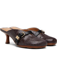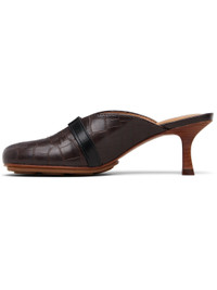 Croc-embossed recycled leather-blend heels. · Pin-buckle strap at vamp · Buffed leather lining · Covered stiletto heel with rubber injection · Leather sole with rubber injection · Heel: H2.5" Supplier color: Chocolate fondant Upper: recycled leather, synthetic. Sole: leather, rubber. Made in Brazil 252144F122004