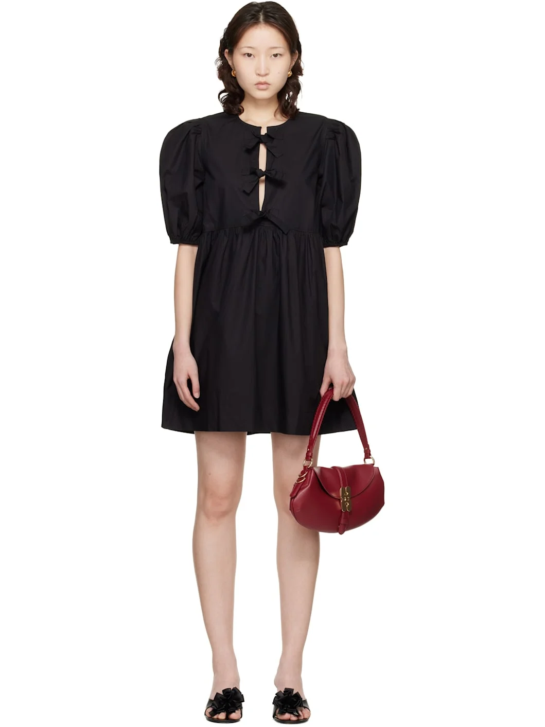 Organic cotton poplin minidress. · Round neck · Self-tie fastenings at front · Gathering at waist · Puff sleeves Supplier color: Black 100% organic cotton. Made in India 261144F052006