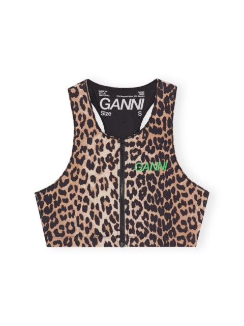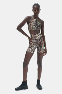 GANNI SPORT LINE GANNI SPORT is a collection of high-performance sportswear styles, designed for an everyday life on the move. The collection builds on the active and on-the-go lifestyle reflected in the GANNI DNA, where the city is your playground. With GANNI SPORT you’re always ready for action, taking you from cycling across town to yoga with friends and beyond. This Active Racerback Zipper Top is made from quick-drying fabric and a blend of certified recycled nylon. The top is designed for a form-fitting silhouette and features a soft elastic waistband, racerback, leopard print, zip closure and a green GANNI Active logo at the front. DETAILS - 75% recycled nylon, 25% spandex. Learn more about our materials - Lining composition: 95% Recycled Polyester 5% Elastane - Non-sheer fabric - Soft elastic waistband - Racerback - Leopard print - Zip closure - Green GANNI Active logo at the front - Quick-drying Made in: China Product ID: T3488 SIZE & FIT - Designed for a form-fitting silhouette, tight throughout - Fits true to size, take your normal size - Lightweight, stretchy fabric - Ideal for medium-impact sports - Candice is 176 cm and wears a size S