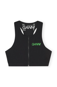 GANNI SPORT LINE GANNI SPORT is a collection of high-performance sportswear styles, designed for an everyday life on the move. The collection builds on the active and on-the-go lifestyle reflected in the GANNI DNA, where the city is your playground. With GANNI SPORT you’re always ready for action, taking you from cycling across town to yoga with friends and beyond. This Active Racerback Zipper Top is made from quick-drying fabric and a blend of certified recycled nylon. The top is designed for a form-fitting silhouette and features a soft elastic waistband, racerback, zip closure and a GANNI Active logo at the front. DETAILS - 75% recycled nylon, 25% spandex - Non-sheer fabric - Soft elastic waistband - Racerback - Zip closure - GANNI Active logo at the front - Quick-drying Made in: China Product ID: T3392 SIZE & FIT - Designed for a form-fitting silhouette, tight throughout - Fits true to size, take your normal size - Lightweight, stretchy fabric - Ideal for medium-impact sports