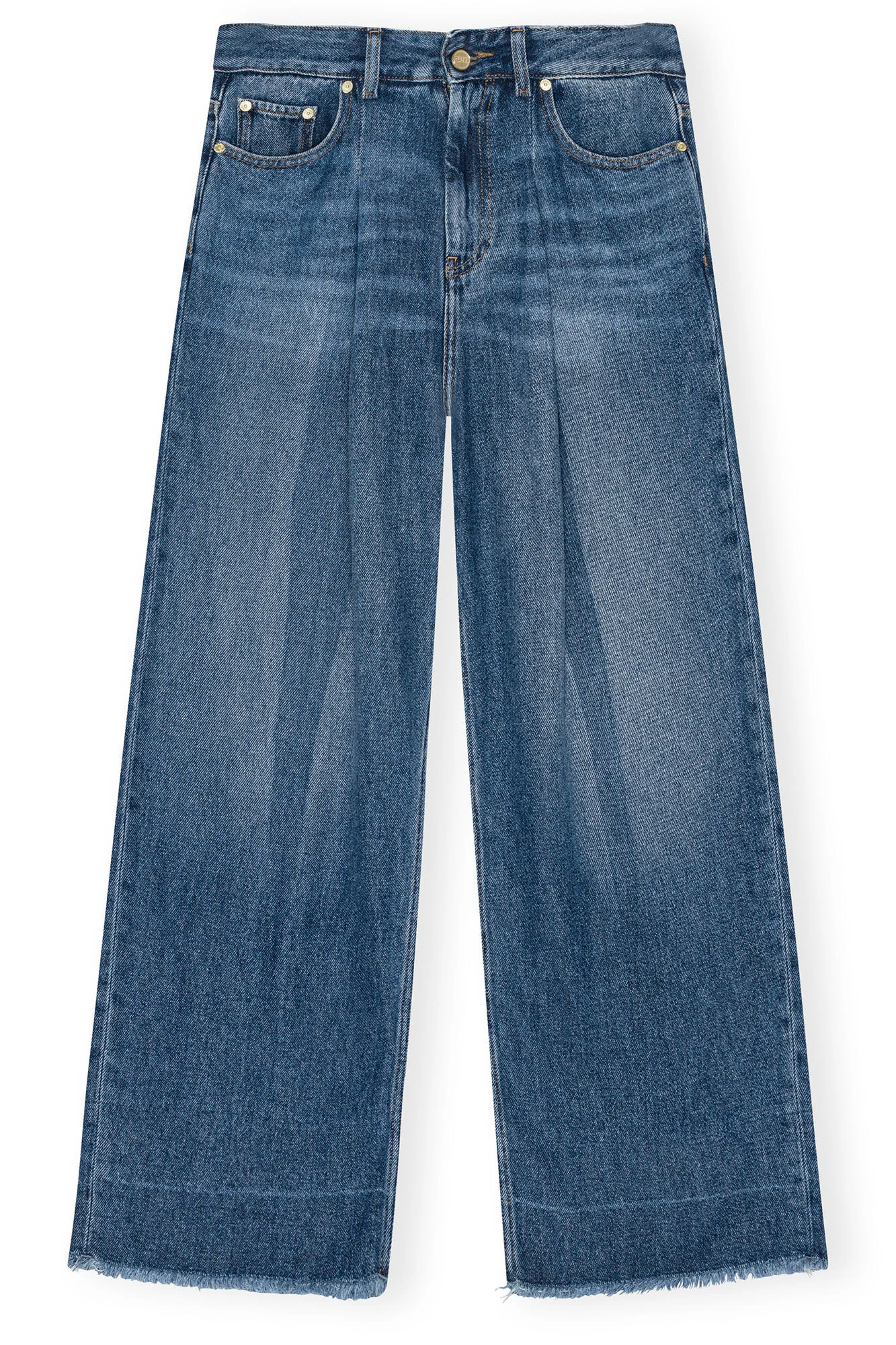 Crafted from TENCEL™ Lyocell, these Blue Light Denim Pleated Jeans feature front pleats that add a unique, tailored-inspired look. Designed in a relaxed fit with a mid-rise waist, classic 5-pocket detailing and finished with raw edges for a bold statement. DETAILS - 100% TENCEL™ Lyocell. Learn more about our materials - 5 pockets - Belt loops - GANNI logo at the back pocket Made in: Tunisia Product ID: J1706 SIZE & FIT - Denise is 5’9” and wears a size 27