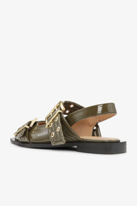 OLIVE GREEN FEMININE BUCKLE BALLERINAS