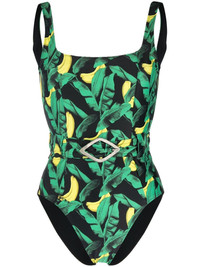 banana tree-print belted swimsuit