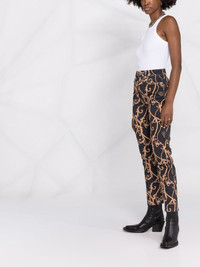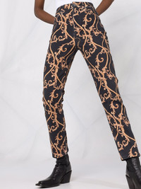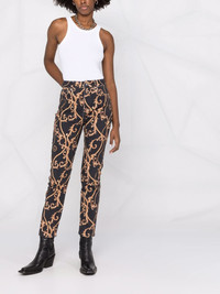 baroque-print jeans A style of art that flourished in 17th-century Europe, baroque can be identified by swirling, asymmetric lines. For SS22, GANNI has adopted this pattern to adorn these slim-fit jeans. Highlights - Black/yellow - Organic cotton blend - Baroque-pattern print - High waist - Front button fastening - Belt loops - Classic five pockets Imported Composition Organic Cotton 99%, Spandex/Elastane 1% SIZE & FIT Model measurements Height 5 ft 10 in(1.77 m) Bust/Chest 29.92 in(76 cm) Hips 34.25 in(87 cm) Waist 23.62 in(60 cm) FittingInformation This piece fits true to size. We recommend you get your regular size Cut for a slim fit Made with a mid-weight stretch fabric Measurement FRONT RISE 12.2 in(31 cm) INSIDE LEG 27.95 in(71 cm) HIPS 35.43 in(90 cm)