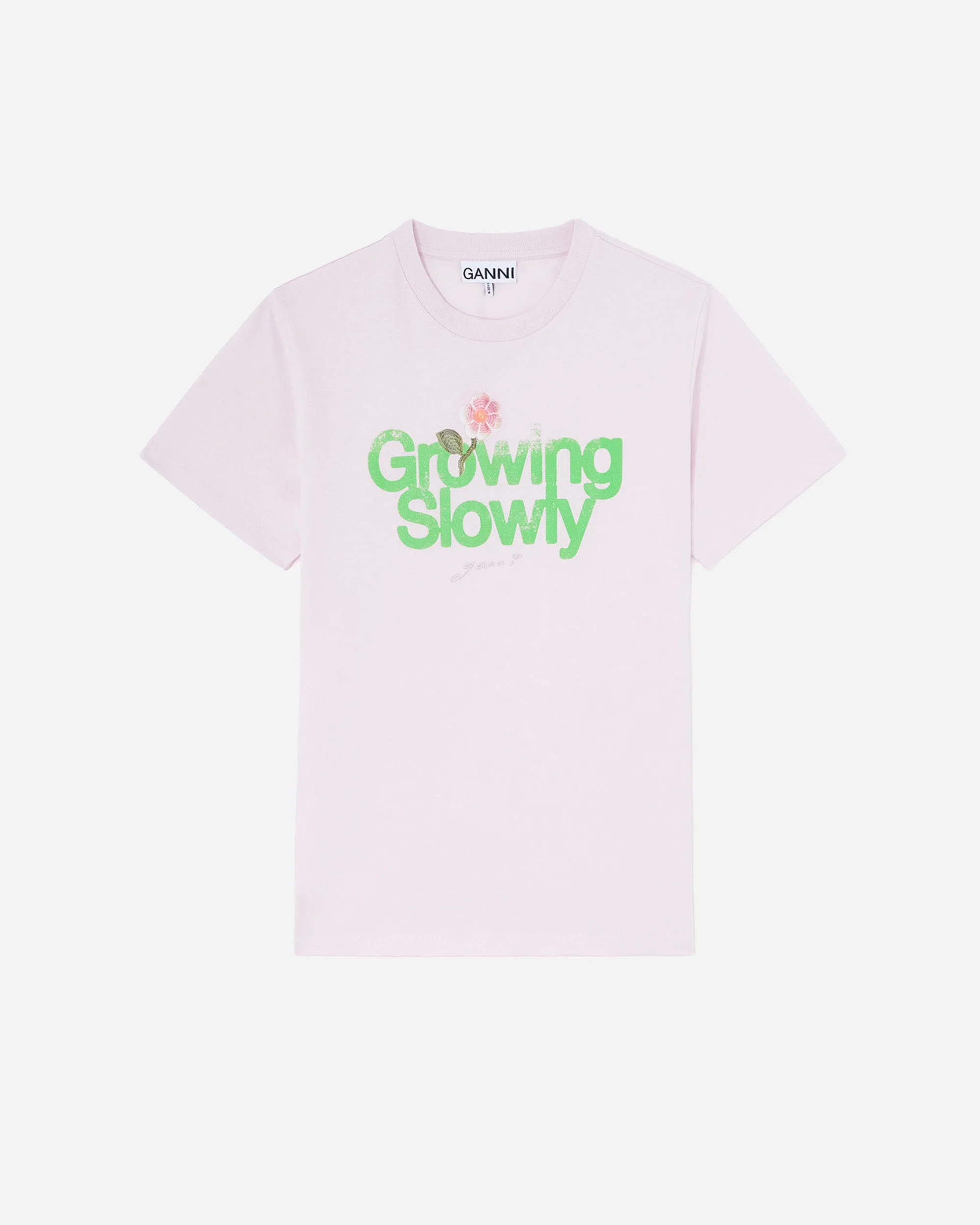 Basic Cotton Jersey Growing slowly by GANNI keeps things light with a soft, everyday cotton jersey feel and a relaxed graphic mood. Shown here in pink, the T-shirt balances a laid back silhouette with a clear statement on the front, making styling feel easy without trying too hard. Curated by NAKED Copenhagen, it pairs naturally with denim, tailoring, or layered outerwear when you want a simple focal point. Store info: Online Exclusive Sizing: WOMENS Article Number: A1050191 Product color: Chalk Pink Delivery & Returns: Shipping to the U.S.: Import duties and taxes not included. These are paid by the customer upon delivery.