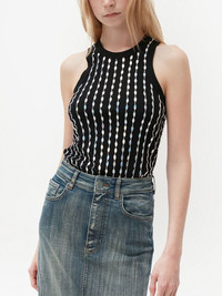 beaded sleeveless tank top Highlights - Black - Stretch-design - Knitted construction - Ribbed knit - Bead embellishment - Logo patch to the rear - Scoop neck - Sleeveless - Straight hem Imported Composition Viscose 66%, Recycled Polyester 28%, Elastane 6%