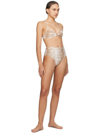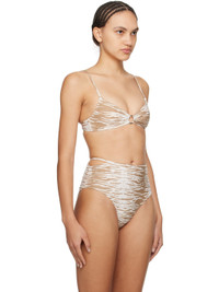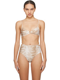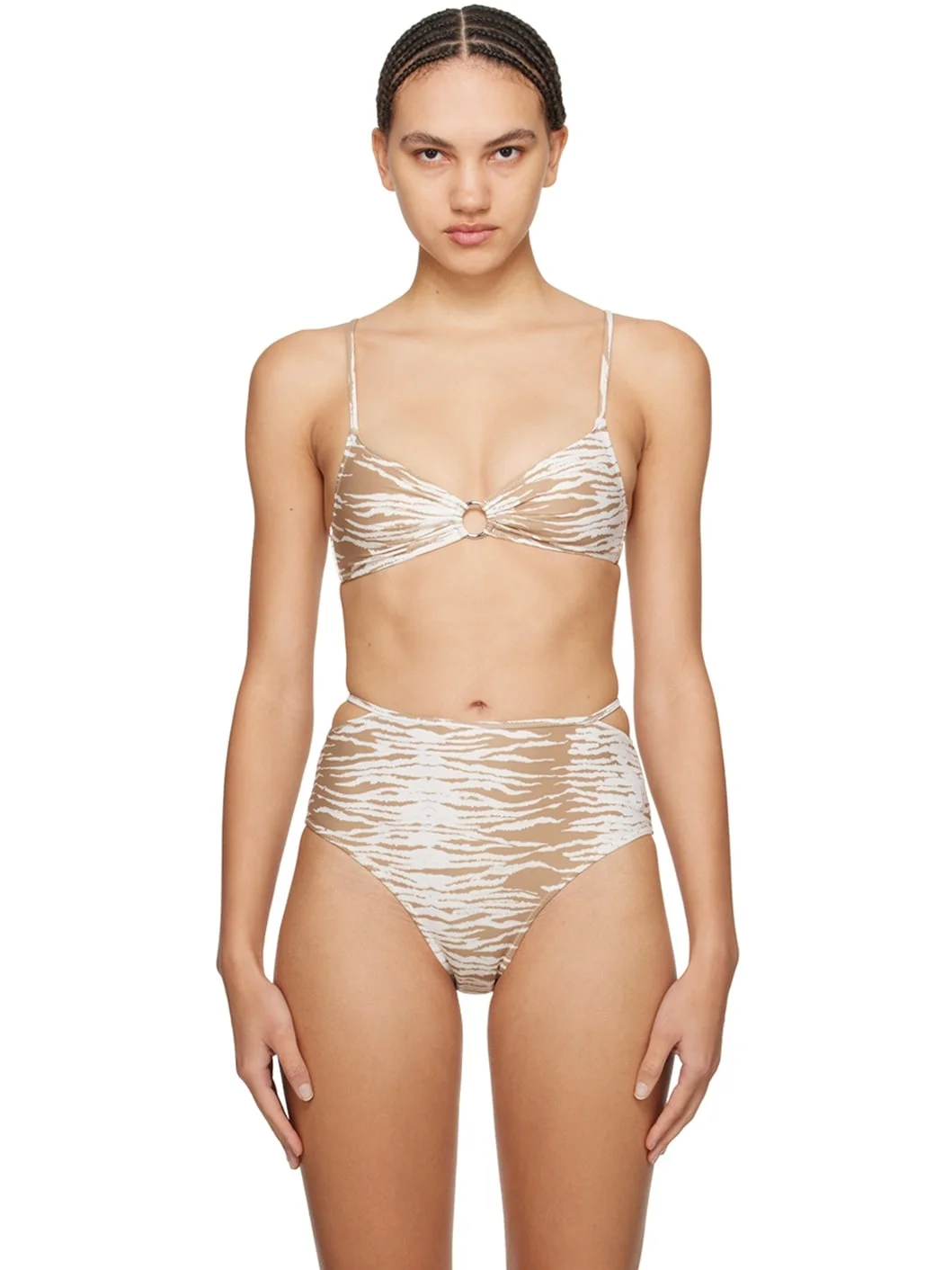Stretch ECONYL® recycled nylon jersey bikini top. Graphic pattern printed throughout. · Sweetheart neck · O-ring at chest · Removable padding at cups · Adjustable spaghetti straps · Flip-clasp fastening at back · Full stretch jersey lining · Logo-engraved silver-tone hardware Supplier color: Tiger's eye Body: 78% recycled polyamide, 22% elastane. Lining: 84% recycled polyamide, 16% elastane. Made in Portugal 241144F105000
