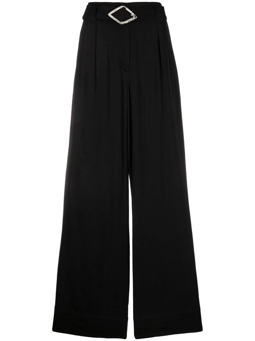 belted palazzo trousers GANNI creates innovative silhouettes, merging the past and present. These trousers arrive with a contemporary palazzo design, with traditional tailoring details including a belted waist. Highlights - Black - Textured finish - Box-pleat detail - High waist - Belted waist - Two side inset pockets - Rear welt pocket - Palazzo design - Floor-length Imported Composition Viscose 100% Washing instructions Hand Wash