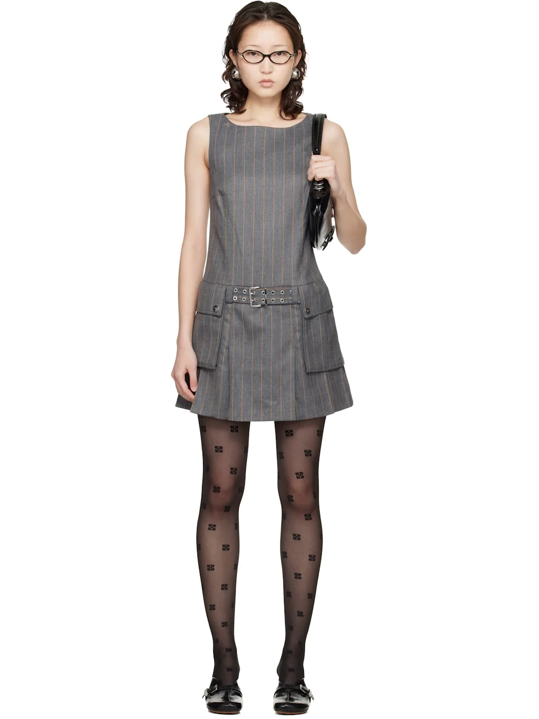 Wool-blend twill minidress. · Pinstripes throughout · Boatneck · Darts at bust · Belt loops and pin-buckle strap at waist · Flap pockets at waist · Pleats at hem · Full satin lining · Logo-engraved silver-tone hardware Supplier color: Pewter melange Body: 42% wool, 41% recycled polyester, 17% viscose. Lining: 57% acetate, 43% viscose. Made in Portugal 261144F052009