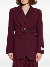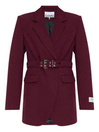 belted-waist blazer Highlights - Burgundy - Wrap style - Buckle belt - Notched lapels - Long sleeves Imported Composition Outer: Recycled Polyester 74%, Viscose 23%, Elastane 2%, Fabric 1% Lining: Acetate 57%, Viscose 43% Washing instructions Read Manufacturer Guidelines