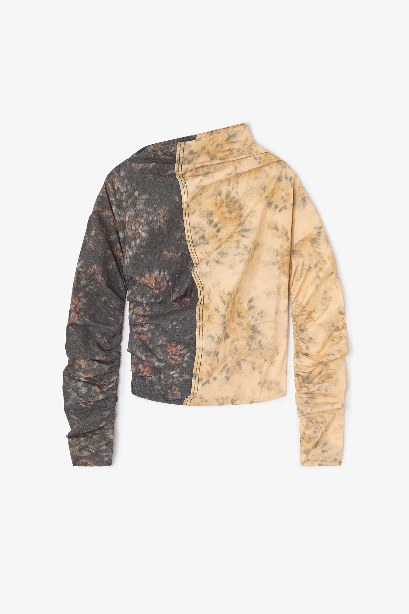 This top in a split romantic floral print features an asymmetrical neckline, ruching at sleeves and a twisted open back detail. DETAILS - 97% organic cotton, 3% elastane. Learn more about our materials - Split romantic floral print - Asymmetrical neckline - Ruched sleeves - Twisted seam front detail - Twisted open back Made in: India Product ID: W1021 SIZE & FIT - Slim fit - Ayesha is 5’9” and wears a size US 4 - For personalised guidance on sizing and fit, contact our Customer Service team - here - .
