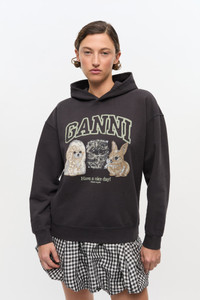 This hoodie features long sleeves with ribbed cuffs. The hoodie has a animal print graphic with a dog, cat, and rabbit on the front, and a 'Have a nice day! Please recycle!' message. DETAILS - 100% organic cotton. Learn more about our materials - Hood - Long sleeves - Ribbed cuffs - Animal print graphic - GANNI logo - 'Have a nice day! Please recycle!' message Made in: Portugal Product ID: T4270 SIZE & FIT - Oversized fit