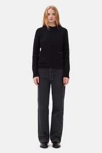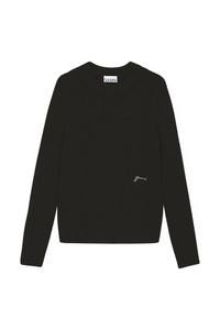 This Black Sweater features a round neckline and long sleeves. The sweater has ribbed edges and an embroidered GANNI logo. DETAILS - 52% alpaca, 32% polyamide, 13% wool, 3% elastane. Learn more about our materials - Round neckline - Long sleeves - Ribbed edges - Embroidered GANNI logo Made in: Italy Product ID: K2105 SIZE & FIT - Regular fit