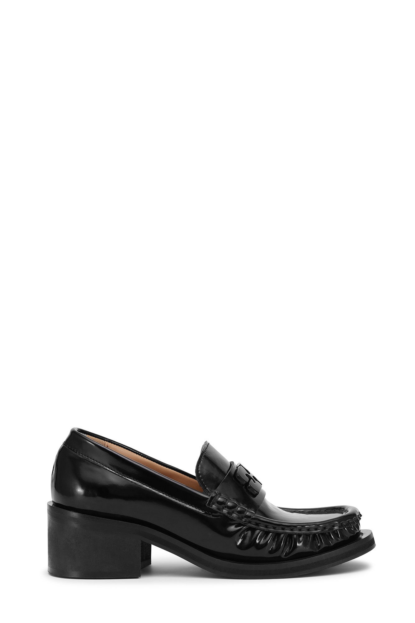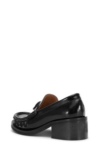 These Black Butterfly Logo Mid Heel Loafers feature a GANNI Butterfly logo and round toes. DETAILS - 58% recycled leather, 25% polyester, 17% polyurethane. Learn more about our materials - Lining composition: 76% Polyurethane 24% Viscose - GANNI Butterfly hardware logo Made in: Portugal Product ID: S2630