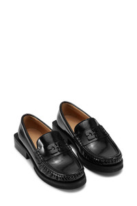 These Black Butterfly Logo Moccasins feature a GANNI Butterfly logo, round toes and squared heels. DETAILS - 58% recycled leather, 25% polyester, 17% polyurethane. Learn more about our materials - GANNI Butterfly hardware logo Made in: Portugal Product ID: S2635