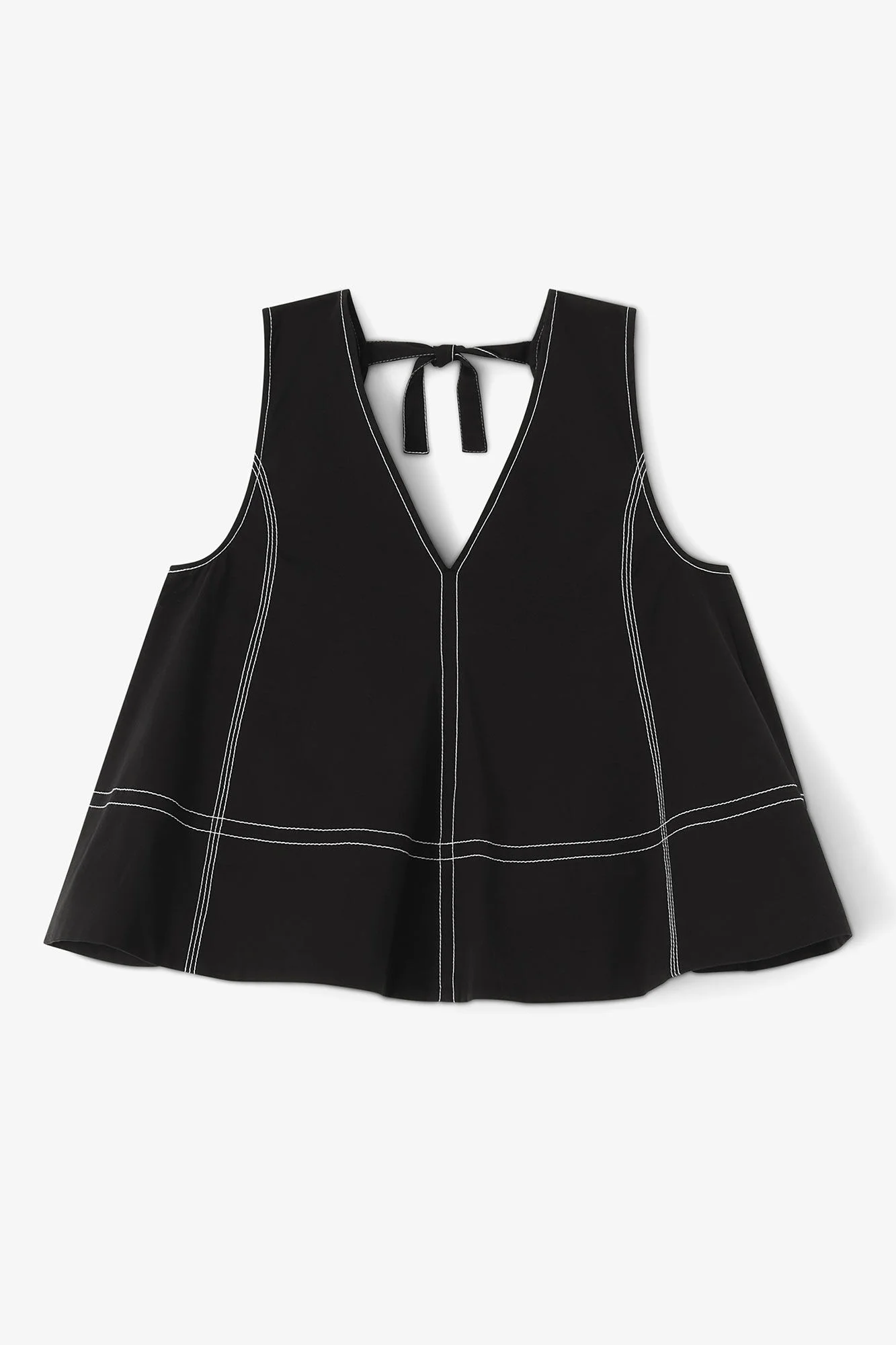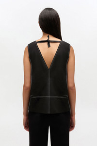 This top features a V-neckline, contrast stitching and a low back with a tie detail. DETAILS - V-neckline - Contrast stitching - Low back - Back tie detail Made in: India Product ID: A1040068 SIZE & FIT - Relaxed fit - Tia is 5’10” and wears a size US 4