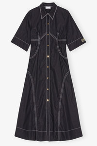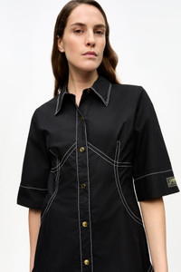 This Black Cotton Poplin Shirt Dress features a collar, button closure, short sleeves and a sewn-on GANNI logo patch. DETAILS - 100% organic cotton. Learn more about our materials - Collar - Short sleeves - Button closure at the front - Sewn-on GANNI logo patch Made in: India Product ID: W0303 SIZE & FIT - Denise is 5’9” and wears a size US 4