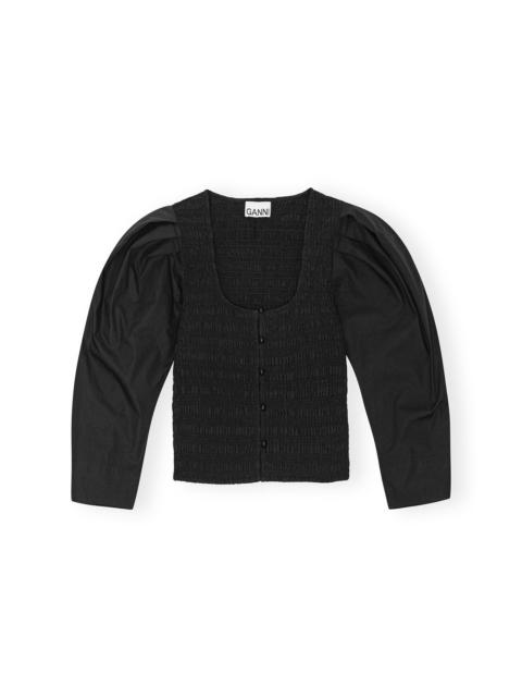 BLACK COTTON POPLIN SMOCK BLOUSE