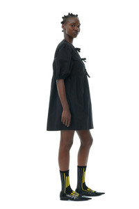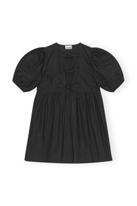 This Black Cotton Poplin Tie String Mini Dress is designed for a relaxed fit and features an open round neckline with tie closures and signature puff sleeves with elastic edges. DETAILS - 100% organic cotton. Learn more about our materials - Tie closures at the front - Puff sleeves Made in: India Product ID: F9005 SIZE & FIT - Designed for a relaxed fit - Take your normal size to achieve the model's look, those in between sizes or with a smaller frame might consider taking a size down for a closer fit - Slightly stiff, lightweight cotton poplin fabric - Tonia is 5’9” and wears a size US 4