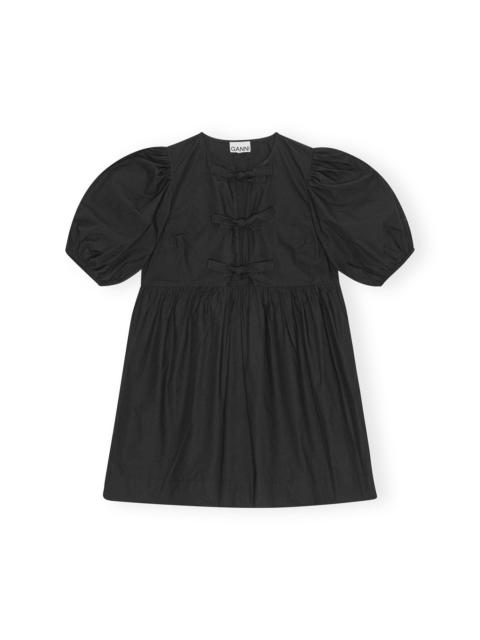 BLACK COTTON POPLIN TIE STRING MINI DRESS