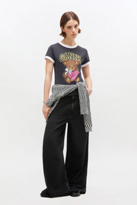This T-shirt features a round neckline, short sleeves, and a GANNI logo. The T-shirt has a teddy print graphic and a 'Have a nice day! Please recycle' message. DETAILS - 100% organic cotton. Learn more about our materials - Round neckline - Short sleeves - Contrast binding - Teddy print graphic - GANNI logo - 'Have a nice day! Please recycle' message Made in: Portugal Product ID: T4335 SIZE & FIT - Fitted - Cropped - Lena is 5’9” and wears a size S - For personalised guidance on sizing and fit, contact our Customer Service team - here - .