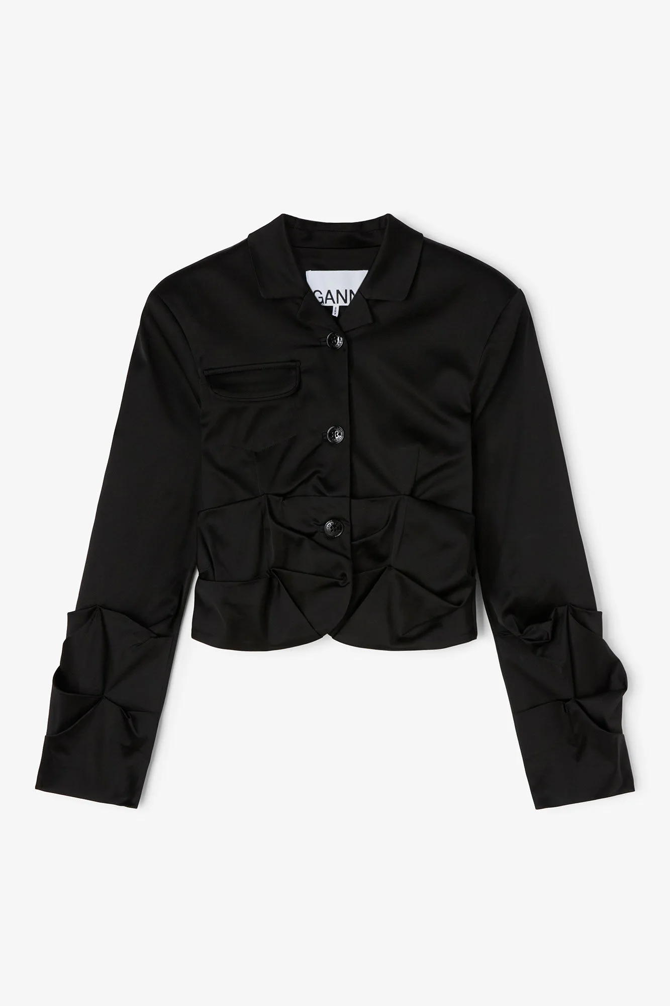 This blazer features a collar, button-front closure, 1 chest pocket and draping detailing at hem and sleeves. DETAILS - 74% acetate, 23% recycled nylon, 3 % elastane. Learn more about our materials - Collar and lapels - Button-front closure - Long sleeves - Chest pocket - Draping detail Made in: China Product ID: W0910 SIZE & FIT - Regular fit