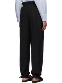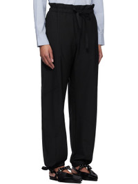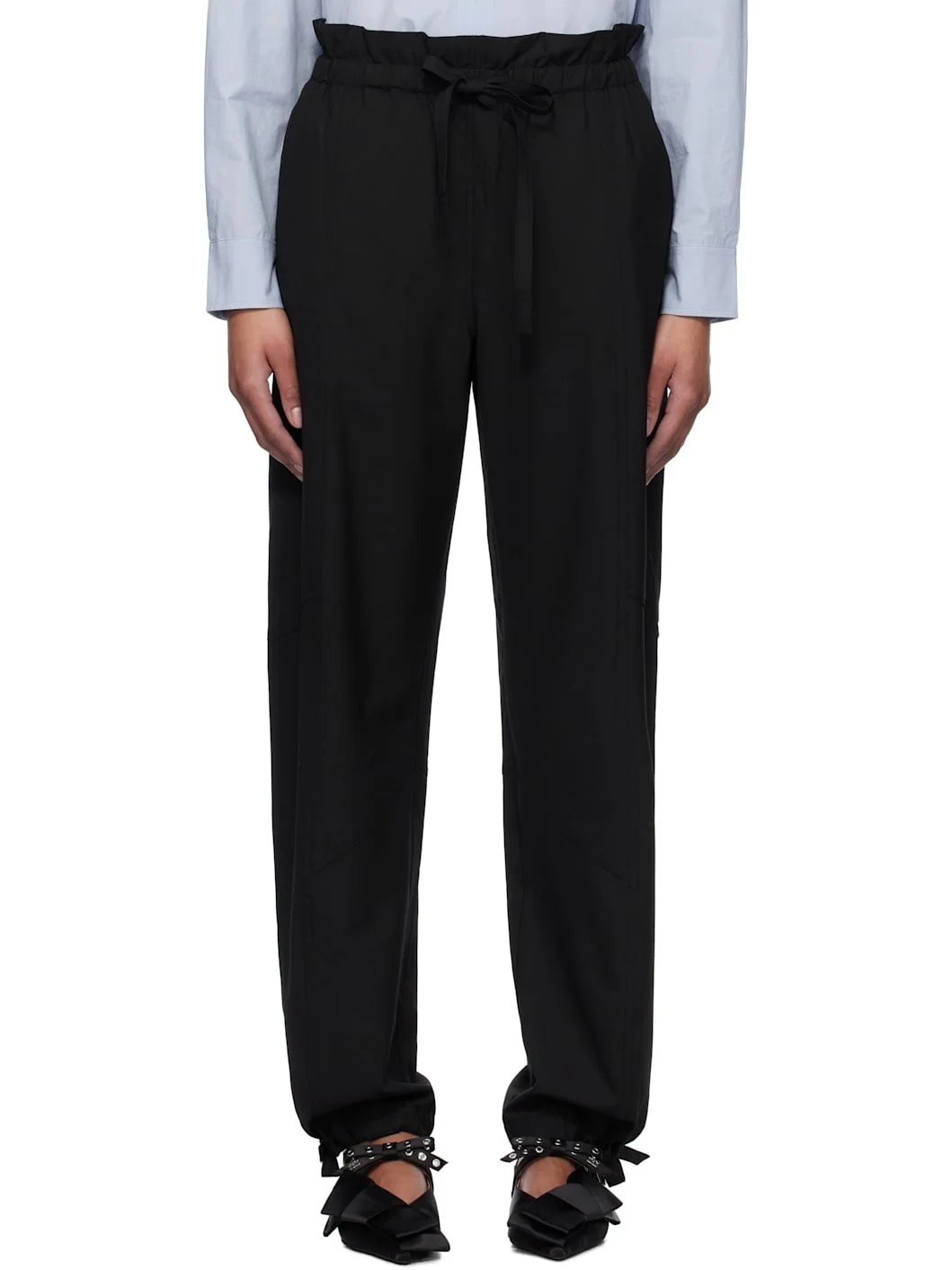 Plain-woven stretch LENZING™ ECOVERO™ viscose- and recycled polyester-blend trousers. · Paneled construction · Drawstring at elasticized waistband · Three-pocket styling · Drawstring at cuffs Supplier color: Black Body: 48% viscose, 44% recycled polyester, 5% elastane, 3% polyester. Lining: 100% cotton. Made in Turkey 251144F087004