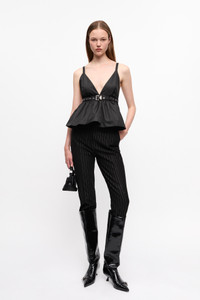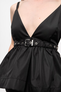 This Black Duchesse Nylon Strap Top features a deep V-neckline, thin straps with small metallic eyelets and a matching belt with a metallic buckle that cinches the waist. DETAILS - 93% Recycled Polyamide 7% Polyurethane. Learn more about our materials - Lining composition: 100% Recycled Polyester - Deep V-neckline - Thin straps - Matching belt Made in: China Product ID: W0175 SIZE & FIT - Regular fit - Noor is 5’11” and wears a size US 4