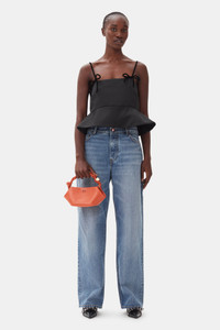 This Black Duchesse Satin Top features straps with bow details, a flounce hem and a zip closure at the side. DETAILS - 100% recycled polyester. Learn more about our materials - Lining composition: 97% Recycled Polyester 3% Elastane - Straight neckline - Straps - Zip closure at the side - Flounce hemline Made in: China Product ID: F9702 SIZE & FIT - Designed for a regular fit - Tonia is 5’9” and wears a size US 4