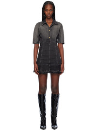 Stretch organic cotton denim minidress. Fading throughout. · Spread collar · Three-button placket · Frayed edge at flared hem · Ruching at side seams · Logo-engraved gold-tone hardware Supplier color: Washed black/Black 99% organic cotton, 1% elastane. Made in Turkey 242144F052034