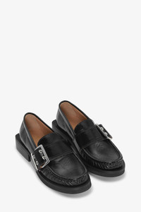 These Black Feminine Buckle Loafers feature gathered seams, large metallic buckles and square heels. DETAILS - 51% recycled polyester, 49% polyester. Learn more about our materials - Lining composition: 76% Polyurethane 24% Viscose - Sole height: 3 - Gathered seams - Large metallic buckles - Square heels Made in: Portugal Product ID: S2534 SIZE & FIT - Fits true to size, take your normal size